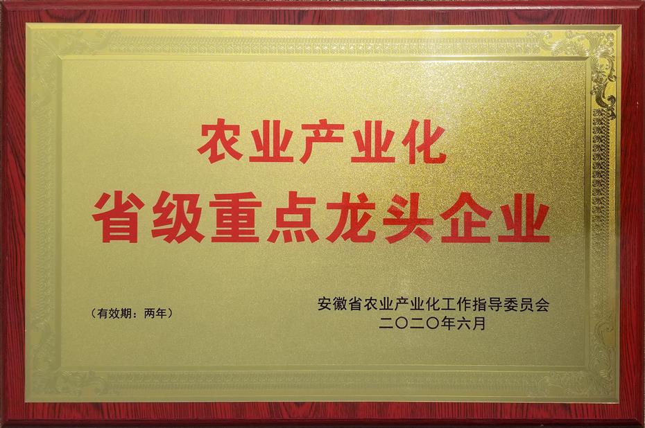 榮獲:安徽省農(nóng)業(yè)產(chǎn)業(yè)化省級(jí)龍頭企業(yè)