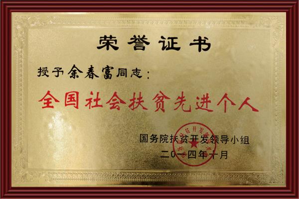 榮獲:董事長(zhǎng)獲全國(guó)社會(huì)扶貧先進(jìn)個(gè)人