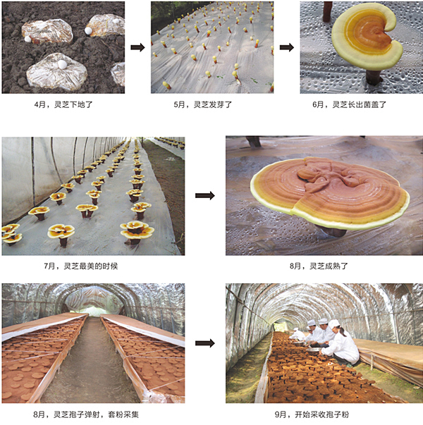 靈芝,譽為仙草,有其復雜的生長過程。從靈芝的選種,育種,培種,菌絲,菌棒下地及生長,成熟到彈粉,收集需一年時間,工序繁多。