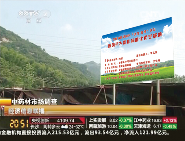 中央電視臺財經頻道于2014年8月8日晚9點左右,經濟信息聯播和8月9日早上第一時間,以較長時段報道了康美來沙河靈芝基地以及對基地負責人李文海的采訪。
