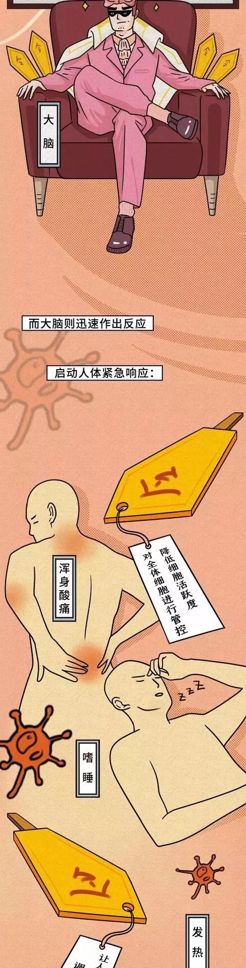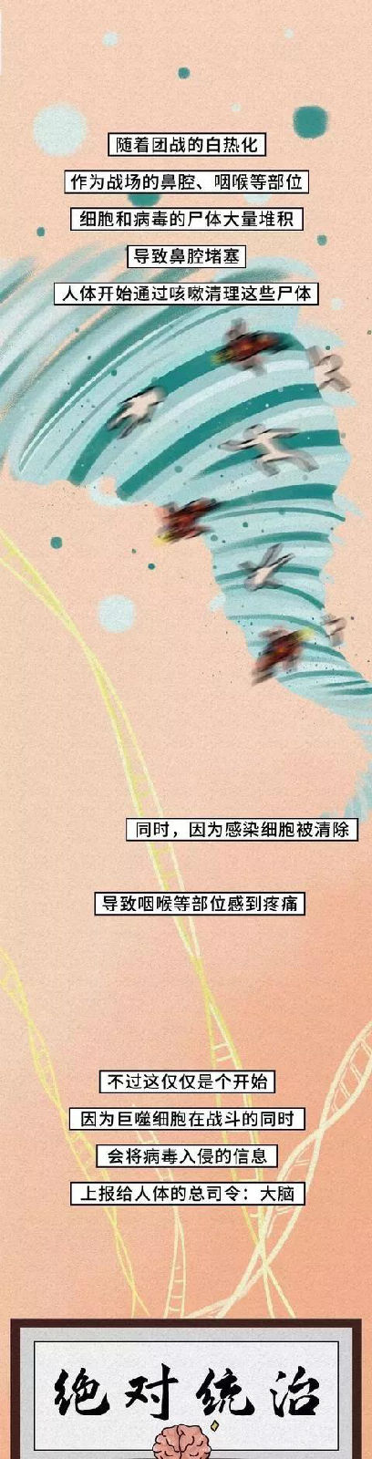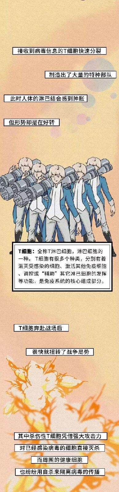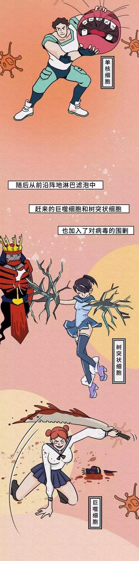 (以下漫畫轉自:國家應急廣播-人體和病毒展開的生死搏斗)