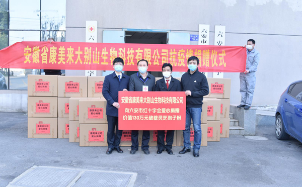 3月5日下午,為支援地方抗擊疫情,康美來公司向六安市紅十字會捐贈芝蔻牌破壁靈芝孢子粉3900盒,總價值130多萬元。