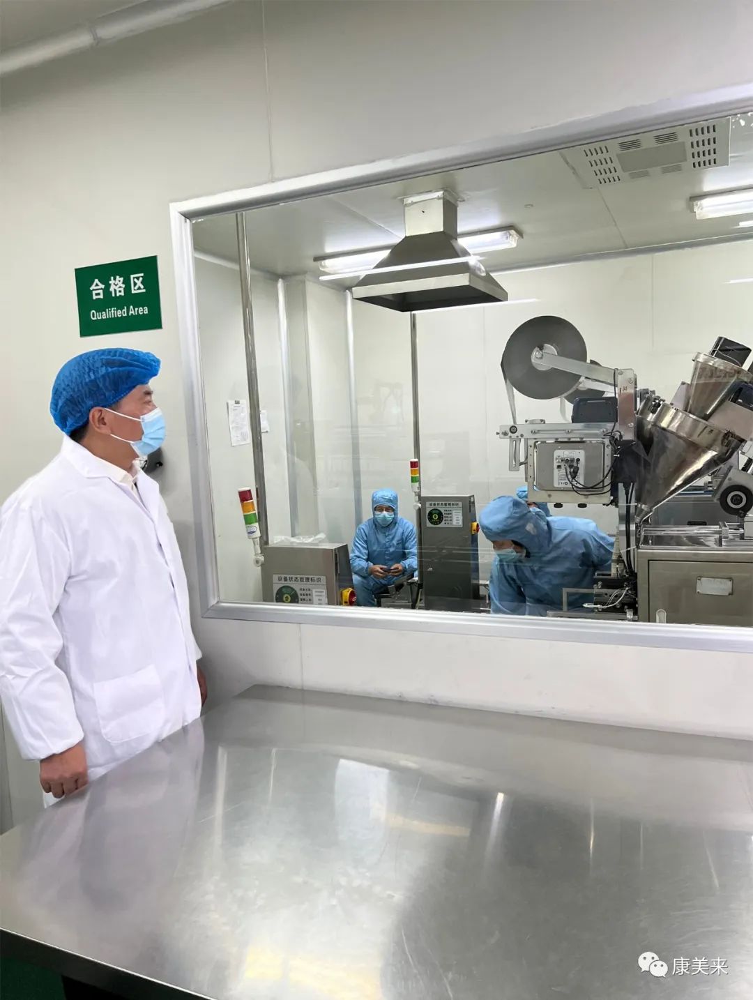 為此,余春富董事長親臨康美來工廠,從藥廠臨時調動人力,支援保健品工廠破壁靈芝孢子粉生產,加大生產量,保障市場供給,讓更多消費者用上破壁靈芝孢子粉,提升免疫力,抵抗新冠病毒。