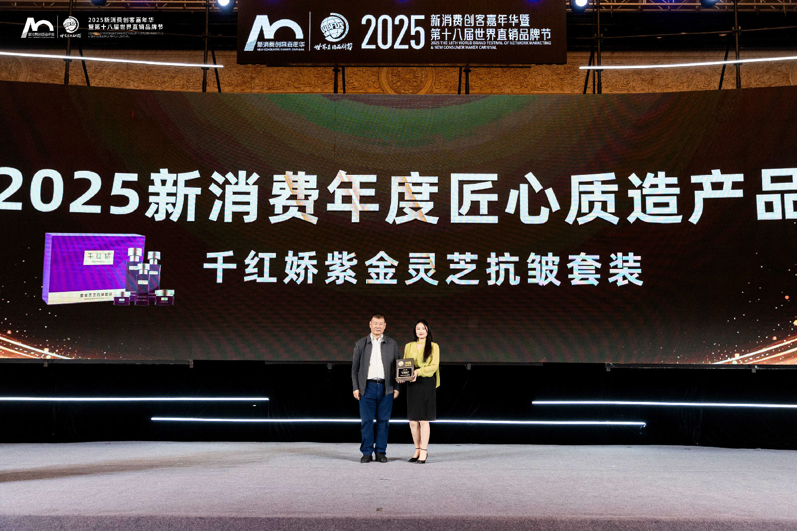 公司千紅嬌紫金靈芝抗皺套裝獲“2025新消費(fèi)年度匠心制造產(chǎn)品”榮譽(yù)。