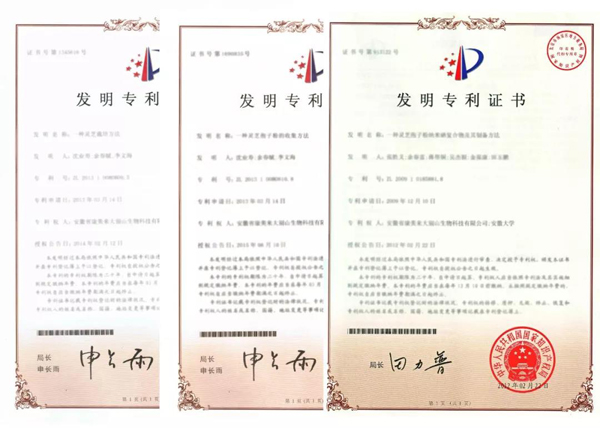 康美來高度重視自主科技創新,十多年來,公司科研團隊與科研院所開展產學研合作,在以沈業壽教授為首席科學家的技術攻關下,在靈芝的栽培、孢子粉的采集、孢子粉的加工三個關鍵環節進行科技創新,取得三項國家發明專利,連續多年榮獲國家高新技術企業,安徽省專精特新中小企業。自2005年起,余春富、沈業壽、李文海三人合作,帶頭改變了皖西大別山靈芝產業的落后狀況,實現了產業升級和高質量發展,科技成為第一生產力。