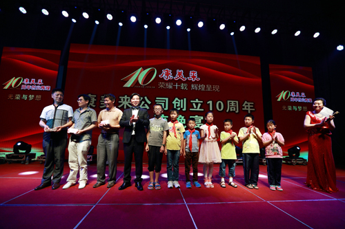 2014年8月,在康美來公司10周年創(chuàng)業(yè)輝煌晚會上,余春賦董事長把110400元現(xiàn)金現(xiàn)場捐助給金寨縣沙河鄉(xiāng)中心小學(xué)、燕子河鎮(zhèn)樹林小學(xué)、青山鎮(zhèn)姜河中心小學(xué)184名貧困學(xué)生,支持政府雨露計劃。公司自2014年起,發(fā)動公司干部和伙伴開展結(jié)對扶貧助學(xué),奉獻愛心,回饋社會。2014年由過去的117名,增加到184名學(xué)生,由2所小學(xué)增加到3所小學(xué)。扶貧辦主任劉澤祥參加捐助活動并講話。