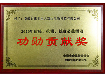 - 2020-11-28- 康美來榮獲安徽省食品行業(yè)2020年防疫、抗洪、扶貧榮獲2020年防疫、抗洪、扶貧公益活動功勛貢獻獎查看詳情